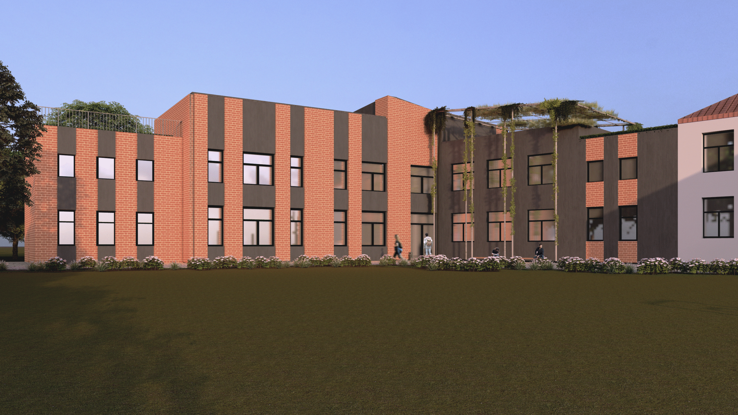 Dodatkowo projekt odpowiada na wyzwania związane z zieloną transformacją, tj. przewiduje wykonanie „zielonego tarasu”, a także „zielonej ściany” budynku.
