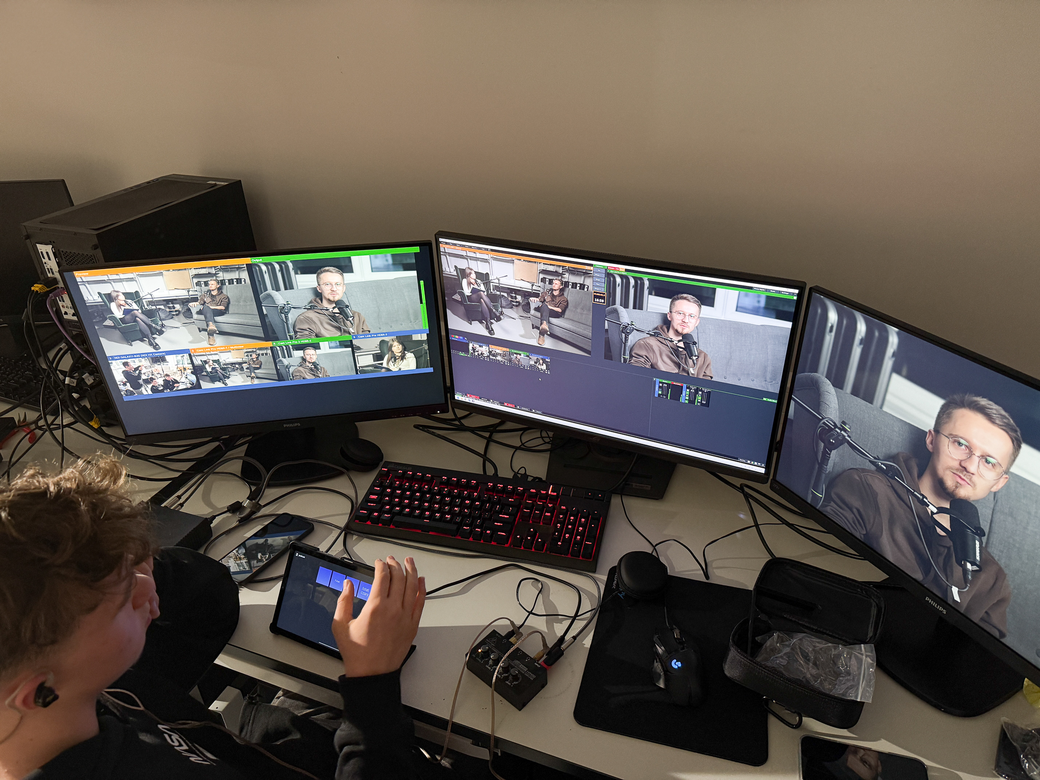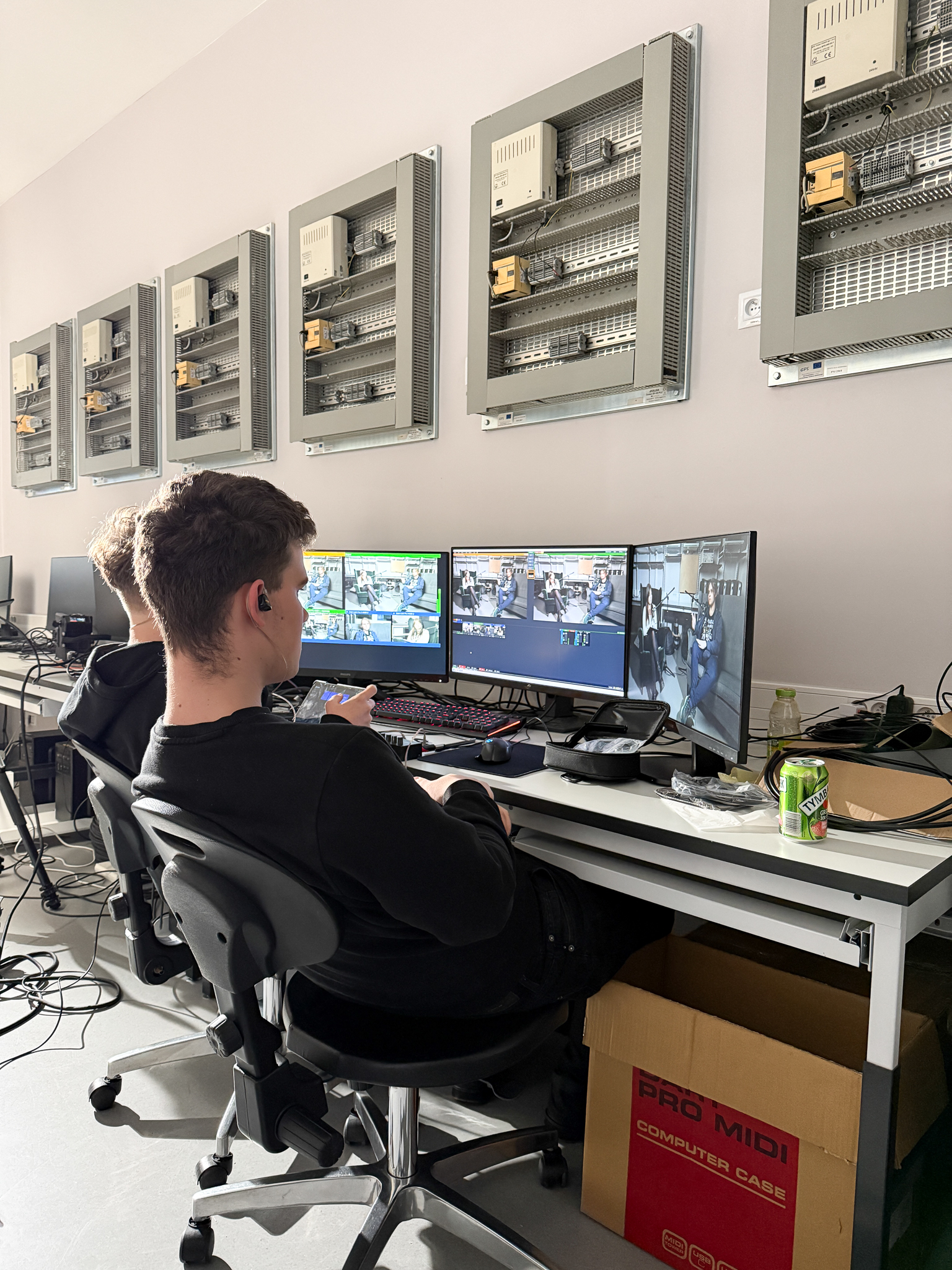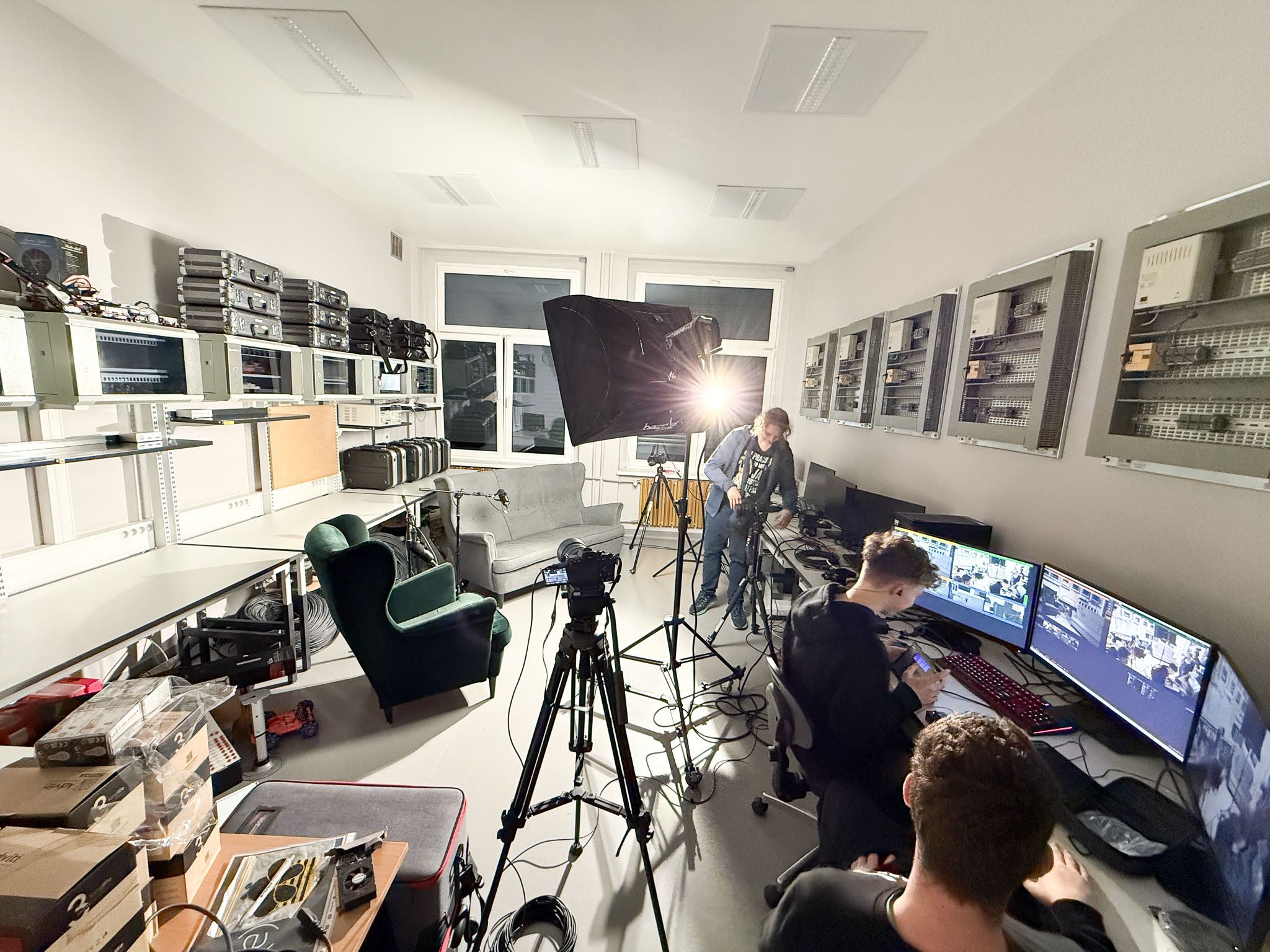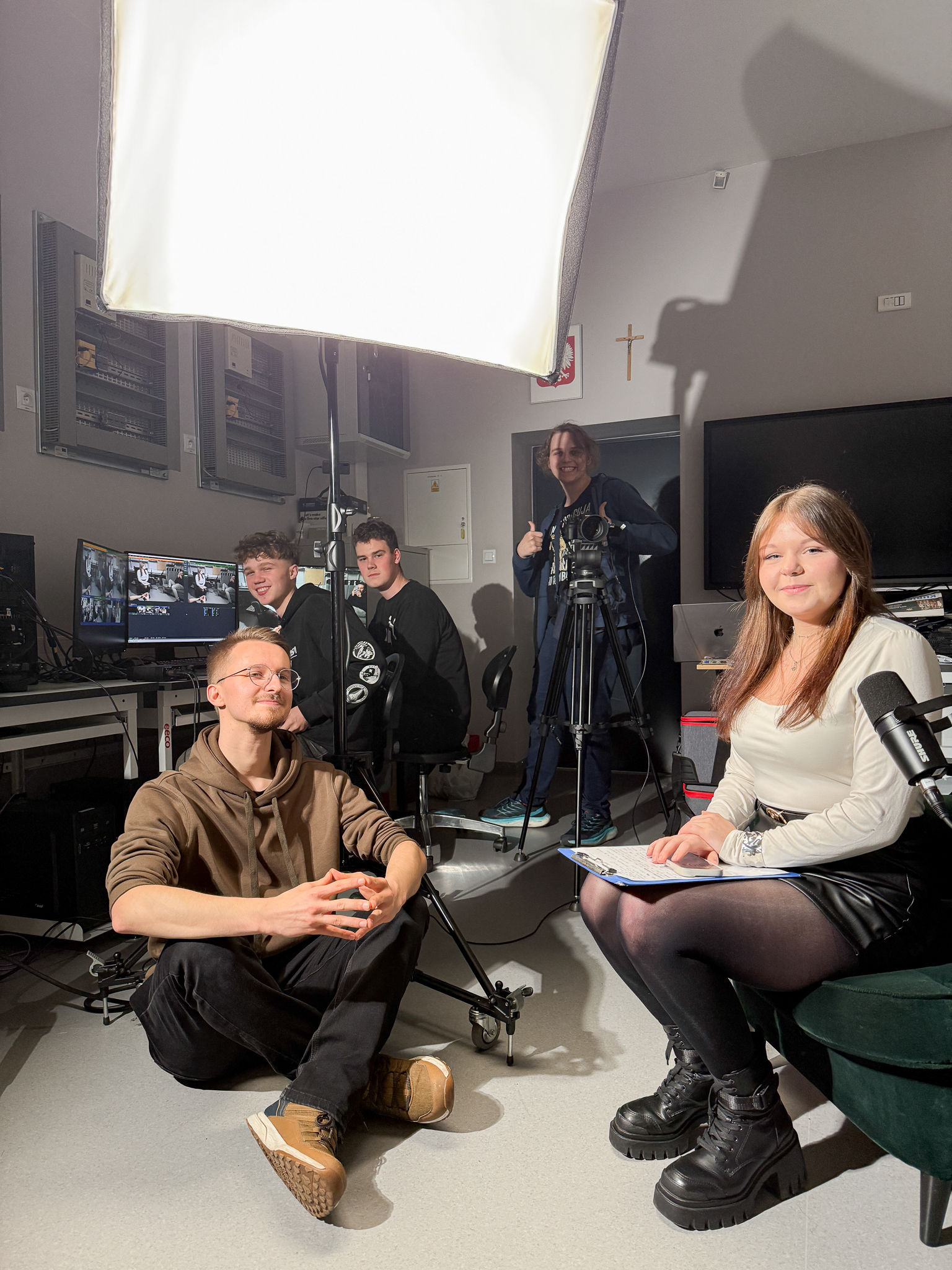 Nowoczesne kamery, mikrofony, oświetlenie i stanowiska komputerowe szybko trafiły w ręce naszych młodych pasjonatów, którzy z ogromnym zaangażowaniem przygotowywali próbną transmisję do zbliżających się wielkimi krokami walk robotów. Każdy element został dokładnie sprawdzony – tak, aby w dniu wydarzenia wszystko działało perfekcyjnie.