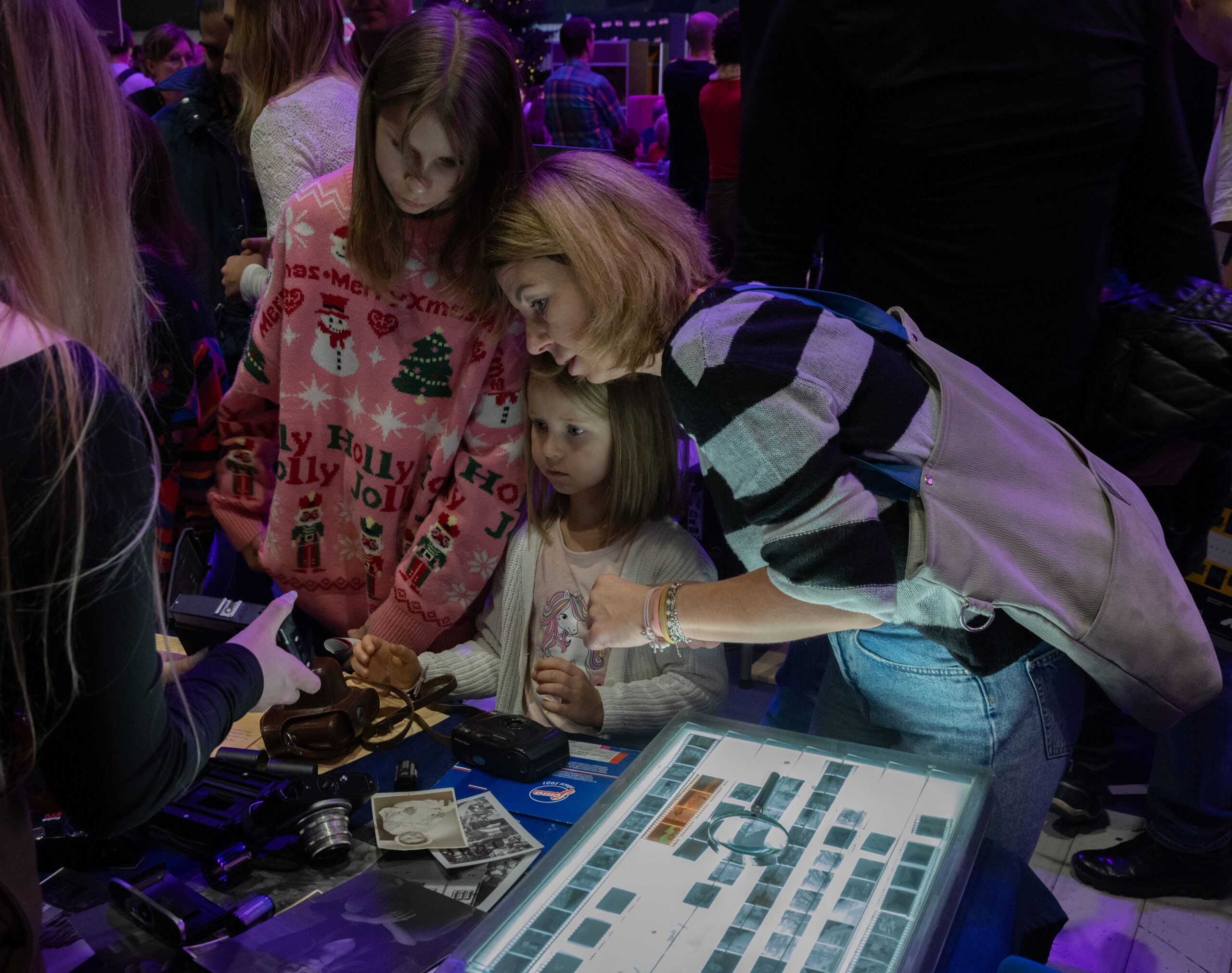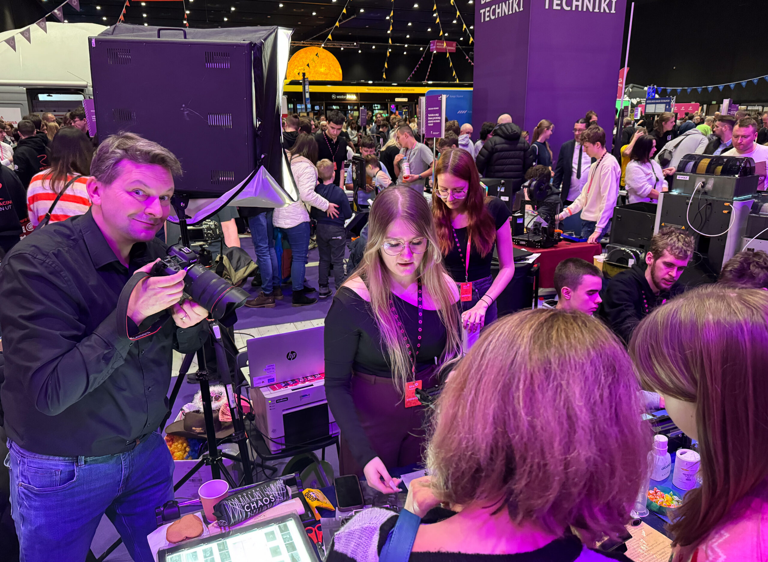 W strefie fotografii uczestnicy mogli zapoznać się z technicznymi aspektami wykonywania zdjęć – od ustawień aparatu, poprzez pracę ze światłem, aż po działanie klasycznej fotobudki, która cieszyła się ogromnym zainteresowaniem zarówno wśród dzieci, jak i dorosłych. Duże wrażenie zrobiła także prezentacja techniki analogowej, pozwalająca wrócić myślami do czasów, gdy fotografia wymagała cierpliwości, precyzji i głębokiego zrozumienia procesu.