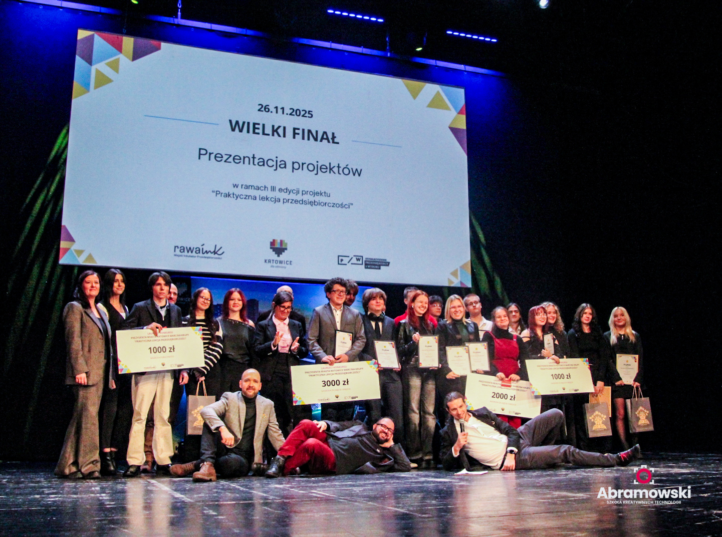 Z ogromną dumą informujemy, że Zespół Szkół Technicznych i Ogólnokształcących nr 3 im. E. Abramowskiego zdobył II miejsce w tegorocznej edycji konkursu „Praktyczna Lekcja Przedsiębiorczości 2025”, którego finał odbył się 26 listopada w Pałacu Młodzieży w Katowicach.